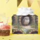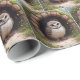 Duas corujas estão na entrada de uma arqueira acolhedora e de pedra enfeitada com verde, cercada por flores silvestres