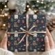 Features a charming, cozy Christmas pattern with trees, hot cocoa, and snowflakes on a sophisticated navy blue background.