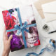 Papel De Presente Crânio com ramos de flores escuras e mar rosa verm