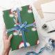 Sorrindo o crânio humano veste um chapéu do papai noel neste papel de envolvimento macabramente do Natal