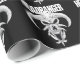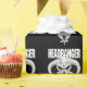 Uns trabalhos de arte de um crânio com o texto "Headbanger" - referindo o fanbase da música do metal - acima do crânio.