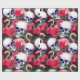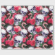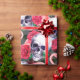 Papel De Presente Crânio humano com flamingo e flores rosas vermelha