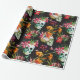 Papel De Presente Crânios assustadores assustadores com flores no Di