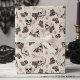 Este divertido papel de embrulho gótico feminino é desenhado à mão a tinta preta por Nathalie Portet, com crânios brancos e rosas cor-de-rosa e creme e teias de aranha contra um fundo branco antigo.