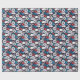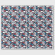 Papel De Presente Crânios com Flores Vermelhas e Brancas
