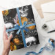 Os crânios brancos com as coroas cinzentas escuras e os rosas alaranjados estão sobre um fundo preto neste design assustador do Dia das Bruxas. Veja por favor que a estréia da imagem da "emenda" para se certificar d é aceitável.