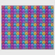 Crânios se repetindo num arco-íris de tons de neon, como um pesadelo de arte pop torcida. Brilhante, colorido e cheio de energia estranha.