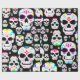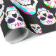 Papel De Presente crânios de açúcar gótico de halloween preto