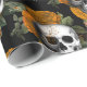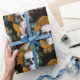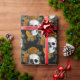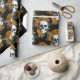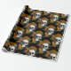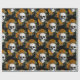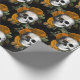 Papel De Presente Crânios e Flores Laranja em Preto