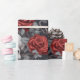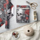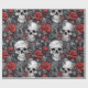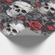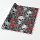 Papel De Presente Crânios e Rosas em Aquarela Vermelho Cinza