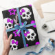 Cabeças de esqueleto na moda com corações violetas & estrelas