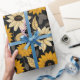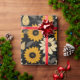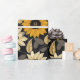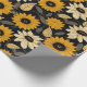 Amarelo-branco e creme, desenhados à mão, girassóis vintage em papel de embalagem preto.