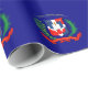 A crista de bandeira da República Dominicana embrulhando papel em azul.