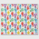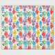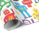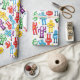 Embalagem branca de presente impressa com um padrão colorido de aliens e robôs de ficção científica infantil