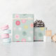 Este doce presente de Natal adiciona o toque perfeito ao seu presente de Natal este Natal. O design apresenta um fundo verde macio com um padrão de flocos de neve coloridos em cores pastel e vermelha.