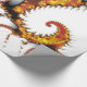 Um design de abstrato de arte de um mítico dragão voador em vermelho, ouro e preto, também deixando uma imagem de seu percurso de voo.