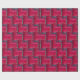 A vibrant crocheted pattern showcases a blend of pink, red, and purple colors, forming a visually striking geometric design