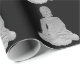 Este papel de envolvimento caracteriza uma imagem telhada de uma estátua de Buddha, de que foi alterado digital para um olhar do cromo. O fundo preto pode ser personalizado como desejado.