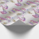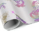 Um padrão de fantasia de unicórnios arco-íris feitos de cristais arco-íris e reluzentes, (impressos) rondando o fundo prateado, com reluz dourada e chifres mágicos.