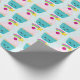 Papel De Presente Cupcake azul bonito com padrão facial Kawaii