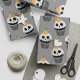 Enrole seus presentes de Halloween em prazer com este charmoso papel de embrulho com cupcakes enfeitados com rostos fantasmas fofos! Perfeito por adicionar um toque divertido às suas celebrações assustadoras.