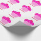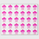 Um bonito design com cupcakes de aniversário cor-de-rosa com decorações e uma cereja no topo. Diz "Parabéns"