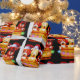 Cachorros adoráveis vestindo chapéu de Natal sentados num balde