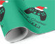 Custom gaming controller Christmas wrapping paper. Personalized gift wrap rolls printed with your text. Available in matte and high glossy finish. Cool wrapping paper rolls for kids and adult who love gaming. Customizable green background color. Fun for friends, family, coworkers etc. Console controller design with Santa hat.