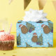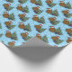 A cute Christmas wrapping paper featuring a cartoon potato in a whimsical Christmas scene. The potato is in front of a Christmas tree that has lights attached and a star on top. Ideal for wrapping your holiday gifts.