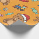 Papel De Presente Cute Christmas Teddy Bear and Toy Train