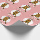 Engraçado e bonito Deer Pink Papel de Moldagem de Natal do Criança. Veado de desenho animado engraçado com nariz vermelho sobre fundo rosa com flocos de neve brancos. O presente tem um nome modelo - adicione seu nome.
