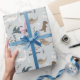 Papel De Presente Cute Dinosaurs Footprints & Custom Name Light Blue