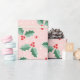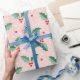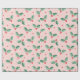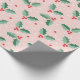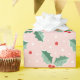 Cute Kawaii Style Christmas wrappingpaper featuring Holly and Berries with little stars on light pink background.