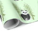 Resolva qualquer presente com este papel de embrulho. Ele apresenta um lindo panda preto e branco felpudo sentado entre caules de plantas verdes de bambu. Você pode mudar a cor de fundo para o que lhe convém.