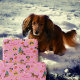 Celebrate the holidays Dachshund-style with this cute pink "Merry Woofmas" gift wrap! Features adorable Santa hat wearing sausage dogs in holiday jumpers, wrapped in colorful lights, next to presents and a Christmas tree and even inside a Christmas stocking. To complement the design there is a scattering of candy canes, gingerbread men with ornaments of bones and of course pawprints. Perfect for wrapping festive gifts for dog moms, dads, dachshund dog lovers and even for your own Doxie, making every gift pawsitively adorable! Spread the holiday fun and order this cheerful wiener wrapping paper today!