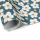 Papel De Presente Cute White Spring Flowers Pattern on Deep Blue