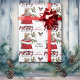 O padrão repetido neste belo papel de embrulho de Natal é uma imagem de um adorável cão Yorkie a espreitar de um saco de presentes de Natal vermelho e branco. Atrás dele está um sorvedouro de bagas sagradas e vermelhas. Um pássaro toucinho vermelho e preto está prestes a pousar. O texto da xadrez de búfalos vermelho e preto estilizado diz MERRY CHRISTMAS", e "Feliz ano novo" está em verde-escuro. Sua própria assinatura está em dois campos para você personalizar. Certifique-se de ver as etiquetas de presentes correspondentes.