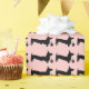 Dachshund com chapéu de festa e silhueta de cupcake sobre cor-de-rosa ou alterar a cor de fundo conforme preferido.