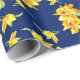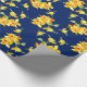 Um belo papel de embrulho floral que apresenta um padrão de daffodils ouros, espalhado sobre um fundo azul marinho. Este bonito papel de embrulho daffodil também seria adequado para projetos de artesanato.