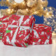 Cães de Natal bonitos em roupas festivas de férias. Dalmático com casacos pretos e brancos veste chapéus de Santa, galhadas, suéteres em um fundo de férias com ornamentos dispersos.