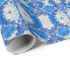 Papel De Presente Damasco Floral, Azul Sapphire e Cinzas