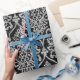 Papel De Presente Damask Black Royal Cinza Silver Glitver