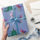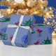 Cor de fundo personalizada. Árvore de Natal, desenho de bailarinas e flocos de neve azuis.