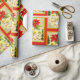 Dançando anjos de bebês pendurados em uma flor de Poinsettia no papel de enrolar de Natal.