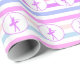 Papel de envolvimento do dançarino de balé com as listras horizontais em roxo, em verde, em azul, o pêssego, o rosa, e o branco. Igualmente tem círculos com uma silhueta roxa da bailarina.