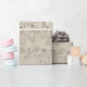Um design de esboço em um histórico de papel antigo mostrando vários artistas coreanos tradicionais tocando tambores, dançando e cantando. Este é o papel de embrulho perfeito para um pequeno toque da Coreia sempre que você comemora um feriado tradicional como Choseok ou um aniversário.