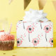 Flor dandelion com mudas de coração vermelho e caule preto em fundo branco.