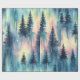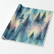 Bold dark aurora night forest pattern wrapping paper with vivid watercolor lights—ideal for nature lovers and dramatic winter theme.
