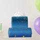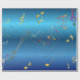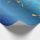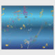 A classy wrapping paper design featuring colorful and gold music notes flowing across a dark blue gradient background. Perfect for musicians, music teachers, concerts, recitals, birthdays, and artistic gift wrapping.