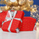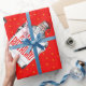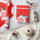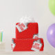 Papel de embrulho divertido especialmente para o bebê de Natal de qualquer idade! O Papai Noel segura um cartaz que diz FELIZ ANIVERSÁRIO, com um fundo vermelho brilhante. Por Scarebaby Design.